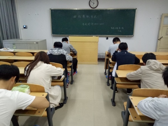 4月24日晚,太阳网集团tcy8722在6号教学楼403教室和405教室进行了英语四级模拟考试。同学们按照要求进入考场,考...