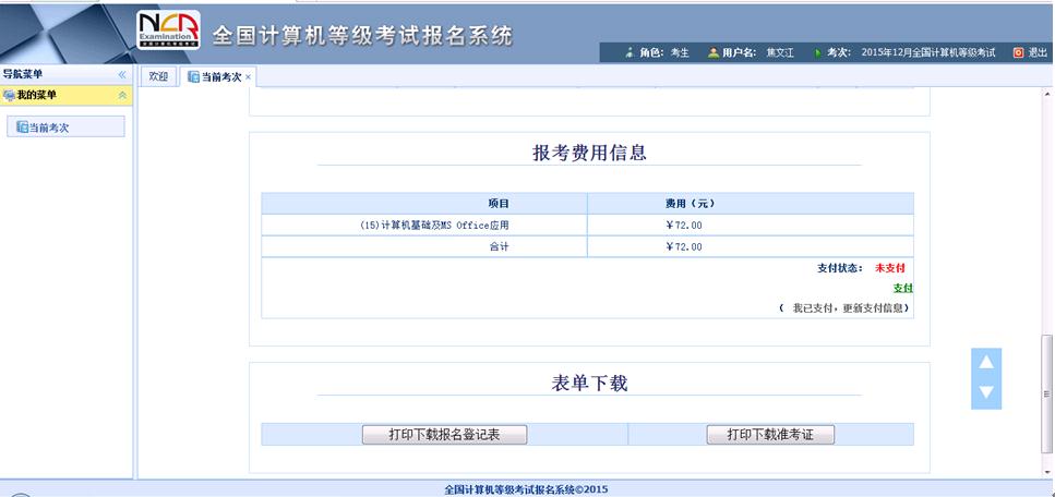 十九、 支付完成,返回报名页面,检查支付状态无误,点击页面最下方的“打印下载报名登记表”按钮,完成报名。(准考证不能立即打印,需要在指定日期打印,下载的文件是PDF格式。)
