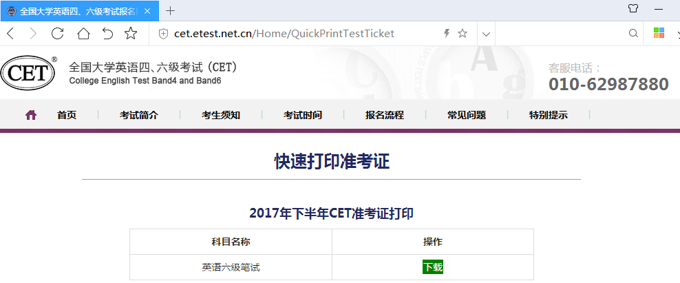 第三步:点击“下载”按钮后进行准考证的打印。