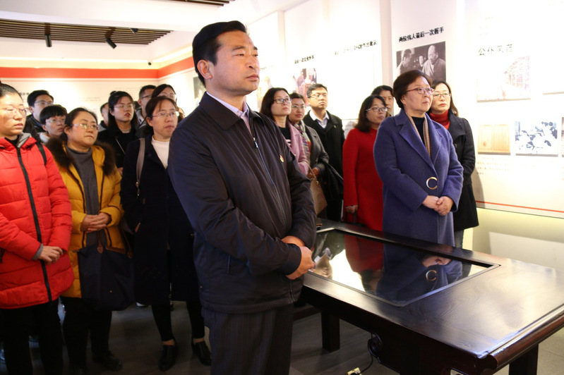 全院师生党员在讲解员的带领下,先后参观了不忘初心、坚守信仰对党忠诚、维护大局热爱人民、勤政为民自我革命、永远奋斗勇于担当、鞠躬尽瘁严于律己、清正廉洁”六个杰出楷模展厅、周恩来总理雕像、怀周祠,共同追忆了周总理“鞠躬尽瘁死而后已”的伟大一生。感恩殿内,全体师生党员想周总理塑像敬献了花篮、三鞠躬,表达了对总理的缅怀之情。随后来到初心园广场重温入党誓词,表达了为共产主义事业奋斗终身的信念。