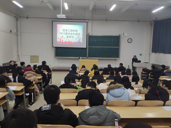 为了帮助同学们更好地了解就业形势,便于同学们获取更多就业信息,解答同学们的就业疑惑,帮助同学们树立正确的就业观念。2018年12月24日晚7点,在六教207举行2019届毕业生就业宣讲会,此次宣讲由赵建斌老师主持,太阳网集团tcy87222015届全体同学参加。