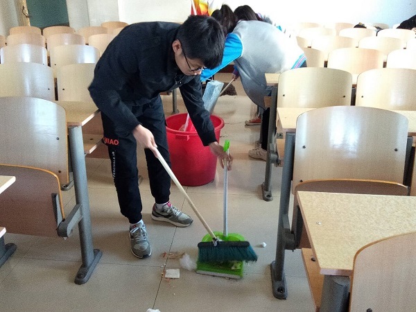 活动前期,为了调动活动积极性,青协部成员在课余时间利用QQ、微博、微信等网络平台进行活动宣传,经过与教学楼管理人员取得联系,争取支持后,负责人对清洁教室进行调查,并对活动人员进行合理分配,分发已准备好的抹布、水盆等物品。各成员积极表现,各尽职责,仔细清洁卫生死角,把教室打扫的干干净净。活动结束后,各成员纷纷表示都体会到了清洁阿姨的辛苦,并保证在以后上课时,一定会保持好教室卫生。