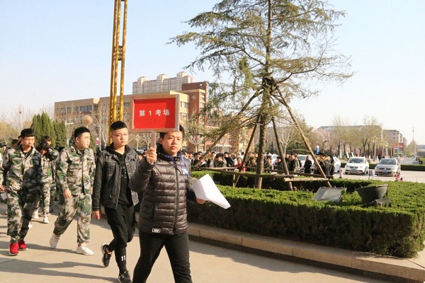 早上六点,在辅导员赵建斌老师的带领下,志愿者们抵达了现场。赵老师部署好现场工作,为接下来的工作展开做了良好的铺垫。在考生陆续到达后,志愿者们积极组织现场考生进行签到、列队以及帮助他们解决疑惑。伴随着考试时间的逼近,志愿者带领着备考队伍开始进场,同时其他志愿者们在场外也在准备着随时应对突发状况,保证了考试的有序进行。