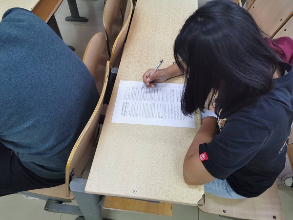 本次竞赛采取闭卷答题的形式,竞赛内容涉及宪法的基本理论知识,宪法的内容、地位和新时代修宪的重要意义等方面。竞赛过程中,同学们认真审题,仔细答题,赛场秩序井然,每位同学参赛态度端正,严格遵守参赛纪律。赛后,不少同学在考场外与其他同学交流竞赛内容,及时补充没有理解透彻或是缺漏的宪法知识点。