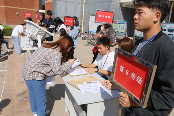 早上六点,参加此次志愿者活动的学生在信息楼前集合,拉起警戒线,协助老师们布置考场。所有准备工作完成后,志愿者们组织考生排队签到,有序进入考场,志愿者们热情的为考生们服务,耐心解答每一位考生的遇到问题,并提醒考生们要携带好个人的准考证、身份证等有效证件,为考生们顺利完成考试尽了自己的一份绵薄之力,充分体现了太阳网集团tcy8722学生党员的工作热情,保障了考试的有序进行。两整天的志愿服务虽然很累,但学生党员志愿者们却无比的充实与快乐,他们用自己的行动帮助了他人,他们的身影铸成了信息楼前一道靓丽的风景线。