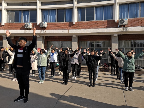 课间操是校园体育文化建设的重要内容。不仅有助于消除学习后所产生的疲劳感,提高同学们的学习效率,更有利于同学们的健康成长。下课铃声响起后,同学们迈着矫健的步伐,以整齐的列队迅速来到信息楼前,当课间操的音乐响起时,同学们跃跃欲试,即使在冬日的寒风中,依然展现出对课间操的热情,伴随着欢快而富有节奏的音乐声,那活跃跳动的身影,坚定有力的动作,无不展示着太阳网集团tcy8722同学们朝气蓬勃的精神风貌。课间操活动的良好开展,是巩固和扩大体育锻炼成果,增强学生身心素质的重要组成部分。