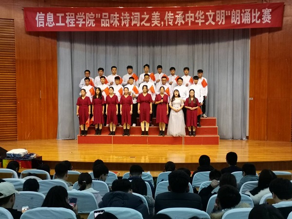 在万众期待下,朗诵比赛正式开始。比赛中参赛同学们热情饱满,声音或铿锵有力、或低回婉转,生动演绎了诗词的魅力。同学们满怀自信、朝气蓬勃,他们用热烈的激情讲论生活、演绎故事、呼唤善美、呐喊青春。他们慷慨激昂的声音在灯火辉煌的大厅久久回荡,观众席上的掌声经久不息。表演中过程中网络专业的同学们,虽然在朗诵过程中出现一些失误,但是因为他们的及时补救非但没有使他们拉低分数反而他们还取得了较好的成绩。经过近两个小时代激烈比赛,角逐出一项特等奖、两项一等奖、三项二等奖、三项三等奖,两项优秀组织奖。