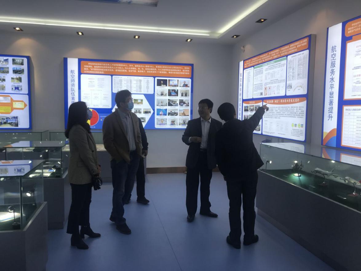 飞行学院院长杜玉杰、党总支书记王同印对我们一行的到来表示热烈欢迎。杜院长从发展目标、学科建设、师资队伍、科学研究、学生管理、特色办学等方面介绍了飞行学院的情况。随后,全体人员参观了飞行学院航空展室、录课室、实验室等,生动感受飞行学院在党建工作、教学管理、专业建设等方面上取得的新亮点、新成绩。