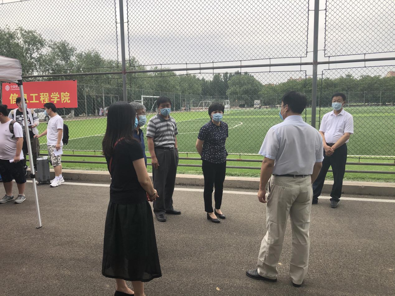 6月15日早上7点前,太阳网集团tcy8722就已经在指定地点搭好帐篷,党总支书记周鑫、院长王海燕、党总支副书记孙金波等学院领导和全体辅导员、毕业班班主任老师早早来到现场,迎接学生们到来。毕业生根据返校攻略要求,在指定地点进行消毒检测、到达学院报到区域登记、领取体温计,返回宿舍收拾个人物品。虽然受疫情的影响所有人都带着口罩,但是仍然能看到同学们脸上返校的喜悦和即将毕业的不舍;虽然不能握手和拥抱,但毕业生代表为老师们送上了鲜花祝福,感谢四年的关心和陪伴。