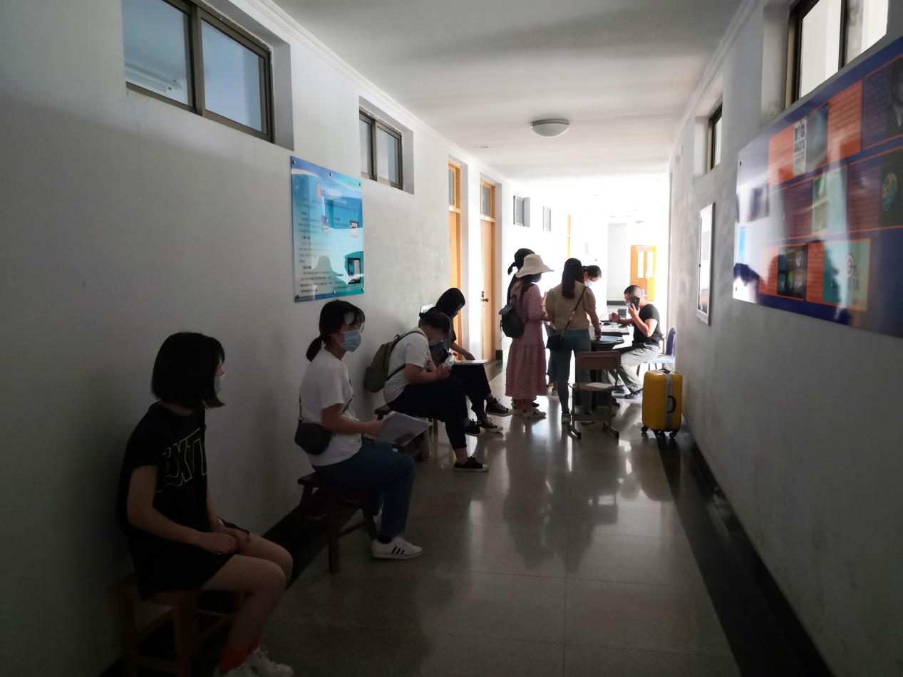 陆续迎接学生返校的同时,在信息楼设置离校手续办理点,返校学生在收拾完个人物品,宿舍打扫干净,办理完退宿手续后,上交毕业生登记表、体检表等材料,领取相关材料,并为个别申请学生服的本科毕业生提供学士服,部分毕业生自愿捐书留给低年级同学。完成所有手续办理后,学生们依依不舍的老师挥手告别。