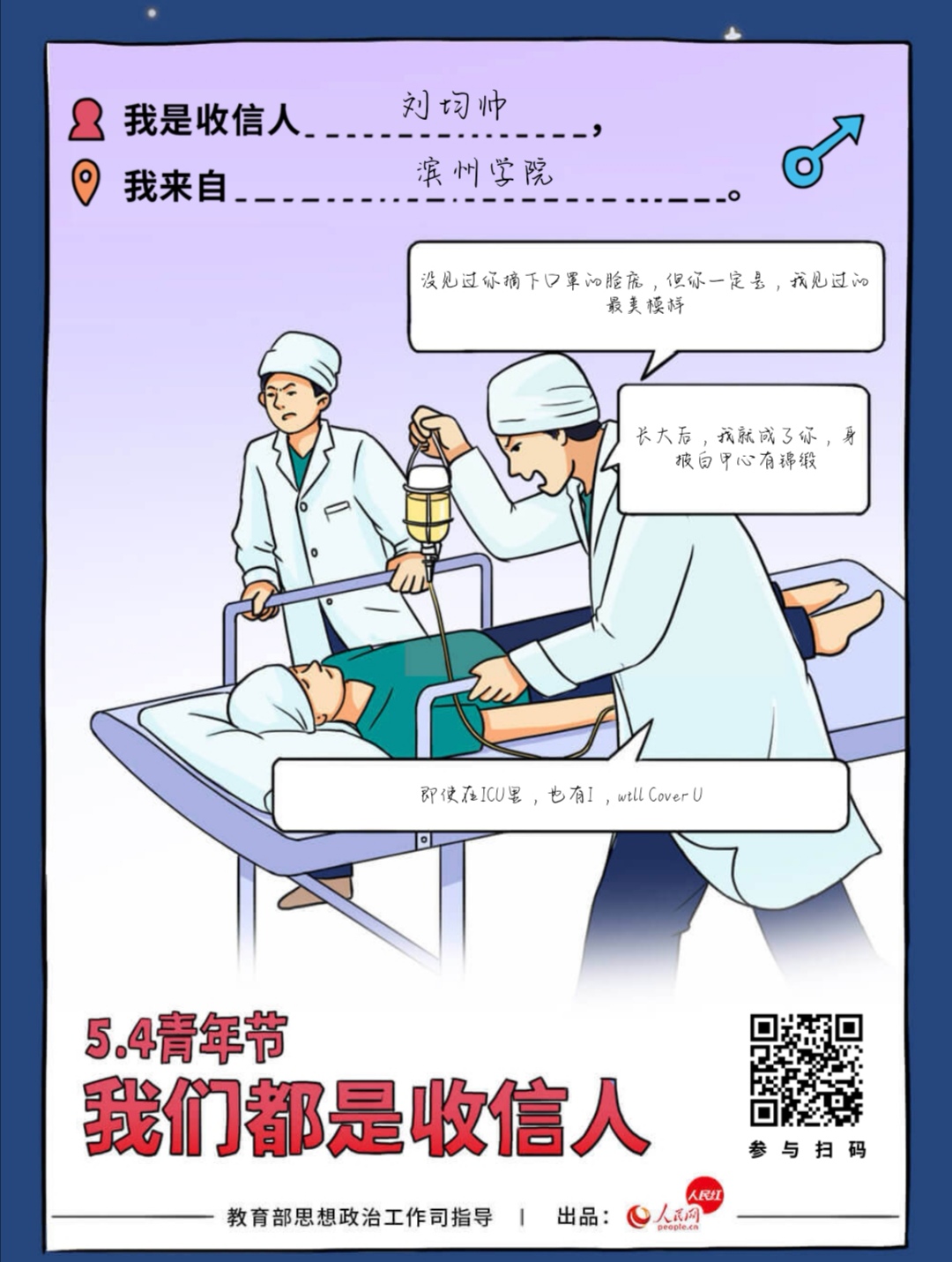 活动要求同学们观看人民网的直播,并参加人民网我们都是收信人的活动,通过收到不同职业的人的来信,让我们了解到,疫情的突如其来,90后毅然成为抗“疫”的中坚力量,曾满腔热血的少年已学有所成,在危机关头担当起抗“疫”大任。疫情爆发以来,他们始终活跃在医疗一线、国门一线、社区一线。“少年负壮气,奋烈自有时”,青年人正在以实际行动回报祖国、绽放青春。而作为青年学子,我们要聆听主席的教诲,坚定理想信念,坚信那个社会主义核心价值观,努力提升专业素养和道德素养,同心共筑中国梦。