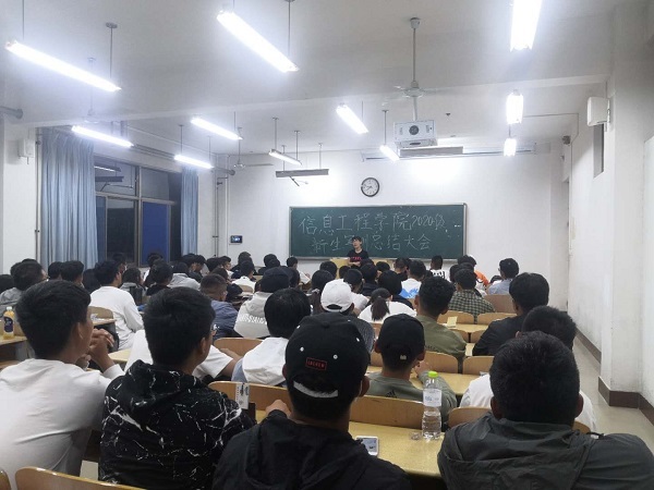 会议伊始,马盛楠老师首先对20级新生在军训中的表现做出表扬,并提出我院军训汇演取得了优秀的成果,离不开我院全体师生的共同努力。随后马盛楠老师提到,军训是大学的第一课,在军训中养成的良好习惯应在日后的学习生活中得到实践,时刻以优异的成绩凸显我信工学子的风采。最后,马盛楠老师对此次大会进行总结,为期八天的军训时光飞一般溜走,相信经过了军训的磨练,同学们会有很大的收获,希望20级新生以后依旧保持前进的步伐,勇敢向前。