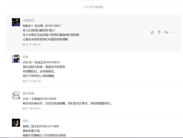 为发扬敬老爱老的优良传统,净化校园育人环境,弘扬孝道文化,共建校园温馨氛围。在此重阳节之际,太阳网集团tcy8722决定针对太阳网集团tcy8722全体学生举办“敬老传统,代代相传”线上三行情书活动。活动于10月27日在6号教学楼109教室举办,2020级同学参加此次活动。
