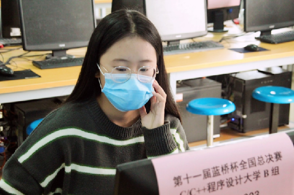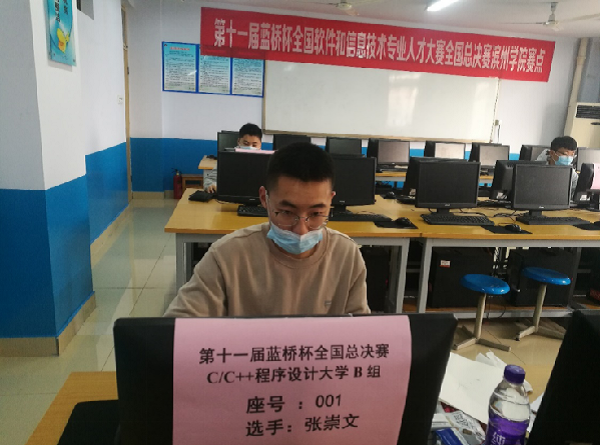 在新冠肺炎疫情常态化防控期间,这一届蓝桥杯比赛首次取消在北京举办全国总决赛,以一校一赛点的方式在全国设置决赛赛点600多个。6名省赛一等奖参赛选手在滨州学院赛点(信息楼东217机房)代表滨州学院参加本次蓝桥杯全国总决赛,他们分别来自太阳网集团tcy872219计本3班的牛学祥和张崇文、19软件专1班的王帮灵、19物联本1班的司志浩、19跨校3班的臧金朔、18物联本2班的李雅其。所有参赛选手以参加C/C++程序设计大学B组、Java程序设计大学B组、C/C++程序设计大学C组竞赛为主,经过4个小时的现场编程解决比赛题目。为确保每一个选手都可以公平、公正的参加比赛,第十一届蓝桥杯大赛总决赛创新地采用在线会议工具,全方位地实时查看每一个考场的比赛情况。
