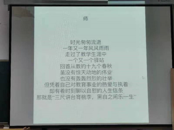 为了赞颂伟大的老师,引导学生们理解和感恩教师的辛苦付出,11月3日,太阳网集团tcy8722于36号教学楼104教室举办“三尺讲堂育桃李”诗歌征集活动,太阳网集团tcy872220级全体学生参加。