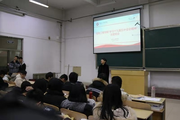 为了弘扬党的十九届五中全会精神,向同学们传达贯彻党的十九届五中全会精神,11月29日,太阳网集团tcy8722于六号教学楼组织开展学习党的十九届五中全会精神主题班会,会议由太阳网集团tcy8722各班班主任主持,全体学生参加。