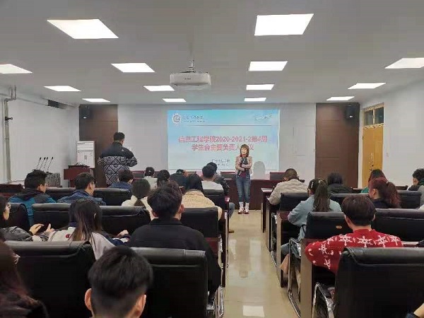 本次会议中,马盛楠科长首先对上一阶段学校各项检查结果进行分析,同时提出针对性建议,希望学生会完善检查制度,在下一阶段的工作中改正问题,规范提高我院学生的行为准则。接下来各负责人对我院社团工作的进度进行报告,马盛楠科长就社团工作提出意见与建议,来完善我院的社团工作。最后马盛楠科长就专业认证材料的准备提出要求,希望负责人能够更加重视本次专业认证,提高工作质量。
