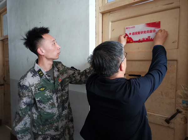 为充分发挥退役复学学生在宿舍生活中的示范引领作用,积极带动身边同学养成严谨自律的生活习惯,进一步健全我院退役大学生培养体系,充分发挥退役学生朋辈育人作用,4月20日下午,我校学生工作部(处)处长贾卫东处长、副处长边小玲、王洪运、我院孙金波副书记为退役学生宿舍挂牌,学生工作部(处)相关同志、我院学生科全体辅导员和部分学生代表参加了挂牌仪式。