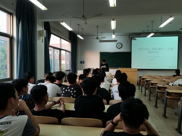 为激发同学们的爱国主义情感,增强同学们的法律意识,培养同学们们讲信用、懂礼仪的思想道德素质。5月30日,太阳网集团tcy8722举办“爱国守法,明礼诚信”主题班会,学生科科长马盛楠主持本次班会。