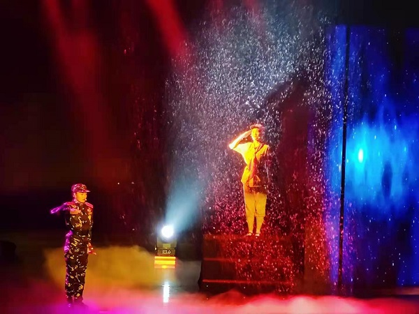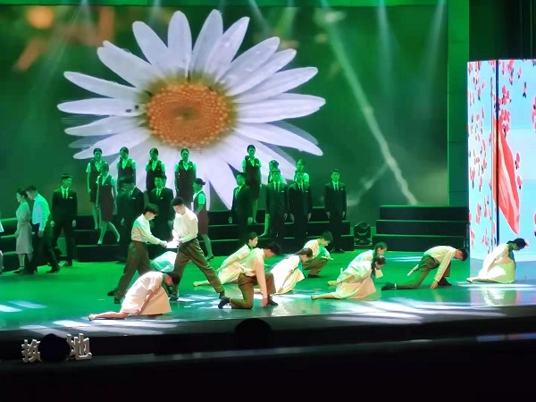 活动开始,主持人讲解了党史的知识,介绍了《中国共产党章程》的相关内容。舞台剧由三幕组成。冲锋号现实与历史的叠现,邓稼先两弹一星的宏伟壮志,再现着红色革命历史场景,追忆着革命岁月,诉说着英雄事迹。跌宕起伏的情节设计、入木三分的人物塑造,无不让现场观众为之动容,掌声不断。百年党史光辉而厚重,散发着信仰信念的芬芳,激荡着初心使命的浪花,蕴藏着启迪未来的智慧。
