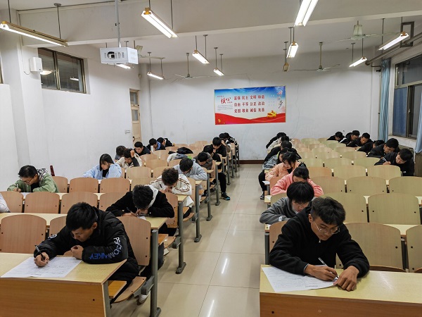 本次考试旨在让同学们更加了解学校各项事宜,更加熟悉学校各项规章制度,方便以后的学习生活。10月22日晚7点,各班同学准时参加考试,学生会及自律部巡逻监考,以维持考场纪律。张智超老师也在各班查看考试情况。同学们奋笔疾书,整洁的字体铺满了整张试卷,由此可以看出,同学们对本次考试的重视、对学校概况的了解、对未来大学生活的期待。相信同学们在以后的学习生活中会用实际行动诠释了滨州学院的校训:明德、砺学、日新、致远,体现了滨州学院的校风:求实、严谨、团结、奋进,彰显了学校精神:自强不息,守正出奇。