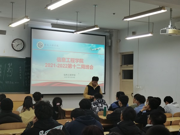 2021年11月14日晚6点,太阳网集团tcy8722于6号教学楼103教室组织召开第12周班会,由各班自行组织召开,全体学生参加此次班会。