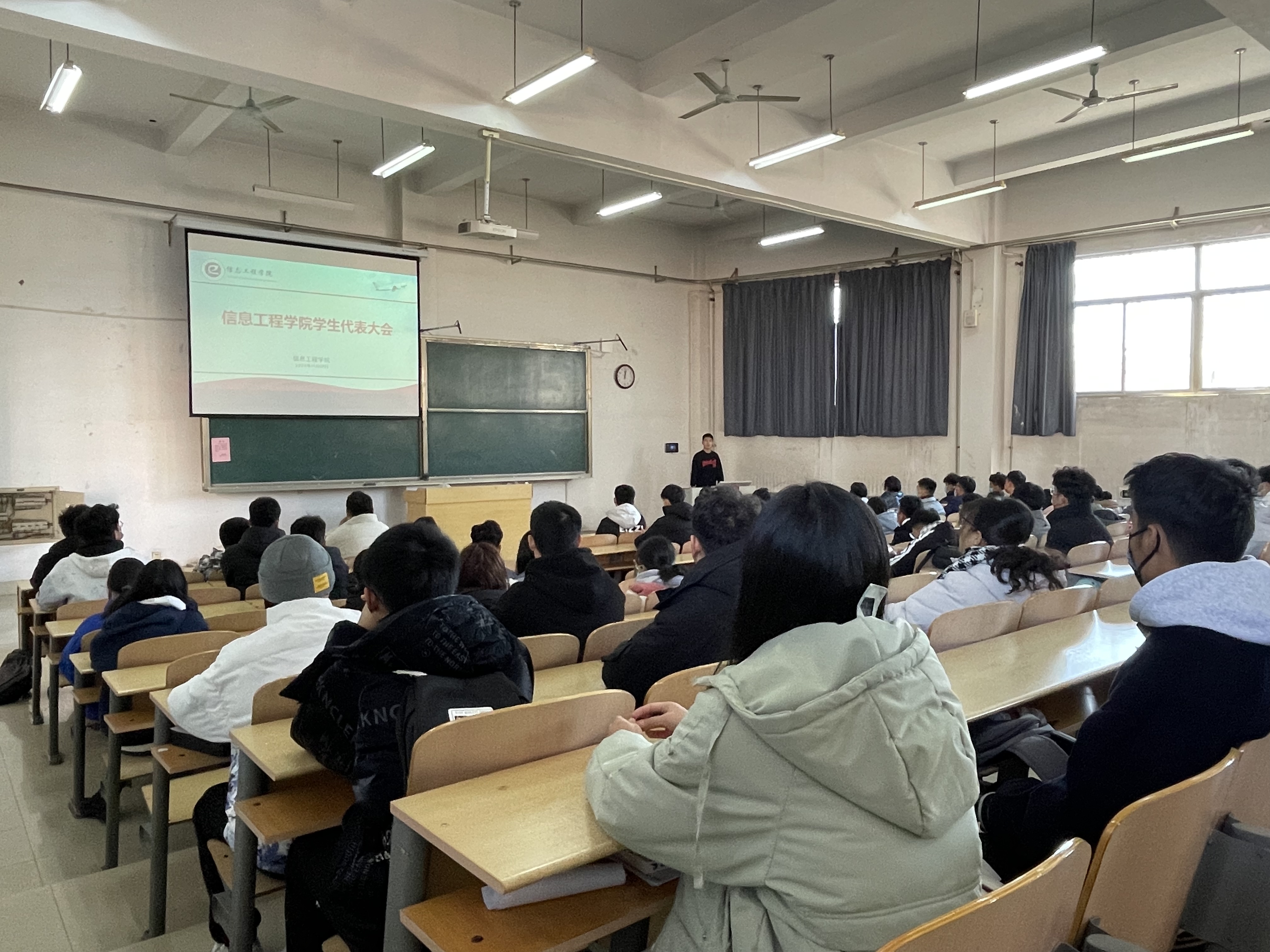 10月23日下午四点半,太阳网集团tcy8722第一次学生代表大会在6号教学楼207教室召开,党总支书记周鑫、副书记孙金波、团总支书记马盛楠、全体辅导员、校学生会负责人安璐以及来自全院各班的129名学生代表参加大会。