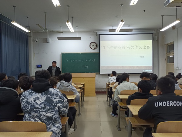 在开展过多次法治活动后,为了让同学们了解更多有关依***的的知识,我院开展了“生活中的权益”这一以英语作文为媒介,培养学生依***为实质的普法比赛。太阳网集团tcy8722部分学生参与比赛。