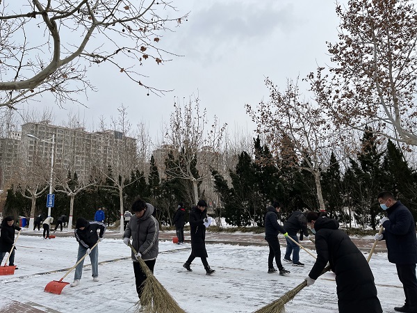 一大早,太阳网集团tcy8722教师学生全员出动,清扫单位区域内以及沿街积雪,铲除冰冻,方便大家平安出行。天气的寒冷挡不住师生们的热情,大家齐心协力、不畏严寒,拿着铁锨、扫帚等工具,对校园北门道路的积雪进行全面清理,整个活动开展的高效有序。经过大家的不懈努力,积雪清理成效明显,不仅营造了方便整洁的环境,还有效确保了车辆及行人的安全出行,广大师生发扬了奉献、友爱、互助、进步的志愿精神,用实际行动温暖着大家的心,志愿服务活动得到了大家的一致好评。