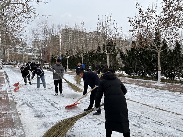 一大早,太阳网集团tcy8722教师学生全员出动,清扫单位区域内以及沿街积雪,铲除冰冻,方便大家平安出行。天气的寒冷挡不住师生们的热情,大家齐心协力、不畏严寒,拿着铁锨、扫帚等工具,对校园北门道路的积雪进行全面清理,整个活动开展的高效有序。经过大家的不懈努力,积雪清理成效明显,不仅营造了方便整洁的环境,还有效确保了车辆及行人的安全出行,广大师生发扬了奉献、友爱、互助、进步的志愿精神,用实际行动温暖着大家的心,志愿服务活动得到了大家的一致好评。