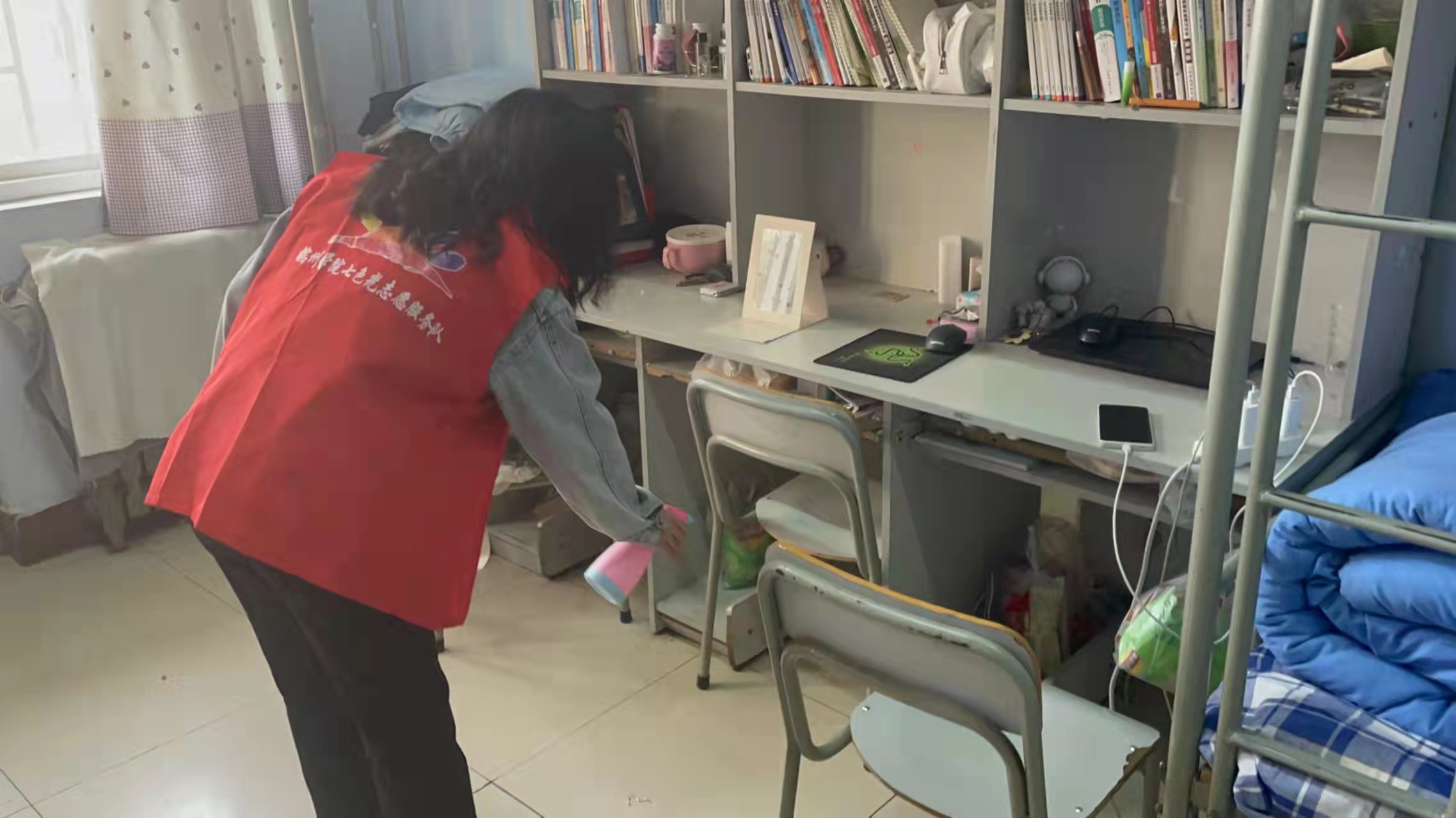 宿舍、楼道、浴室、卫生间……学生党员一日3次进行地毯式消毒杀菌,“不留死角、不留盲区”。消毒过程中他们严格按照卫生消毒管理的标准规范,确保各个寝室及公共区域都进行了彻底的消毒,同时按要求对寝室进行通风,净化宿舍卫生,确保宿舍安全,提醒同学们要勤洗手常通风,及时清理垃圾,减少细菌滋生。