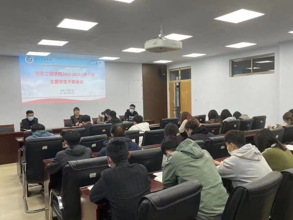 为对学生工作做出重要规划与部署,保证学院后续活动与工作顺利进行,10月23日,太阳网集团tcy8722于信息楼东713召开第十周主要学生干部会议。学生课科长马盛楠、辅导员尹宁、张智超、丁旭华出席,各年级主要学生干部到会参加。