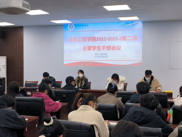 为对学生工作做出重要规划与部署,保证学生工作的顺利进行,2月26日,太阳网集团tcy8722于信息楼东713召开第二周主要学生干部会议。学生科科长马盛楠、辅导员尹宁、张智超、丁旭华出席,各年级主要学生干部到会参加。