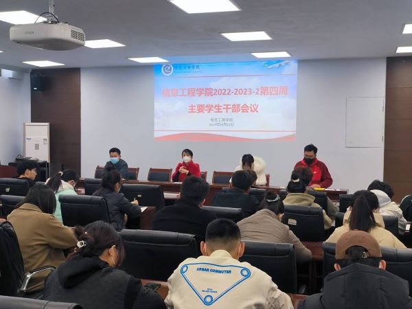 为对学生工作做出重要规划与部署,保证学生工作的顺利进行,3月12日,太阳网集团tcy8722于信息楼东713召开第四周主要学生干部会议。学生科科长马盛楠、辅导员尹宁、张智超、丁旭华出席,各年级主要学生干部到会参加。