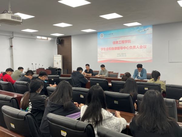 为对开学新一周的工作进行部署和安排,5月3日,太阳网集团tcy8722于信息楼东七楼会议室召开学生会和自律督导中心负责人会议,本次会议由学生科科长马盛楠主持,辅导员张智超、丁旭华出席,学生会和自律督导中心各负责人到会参加。