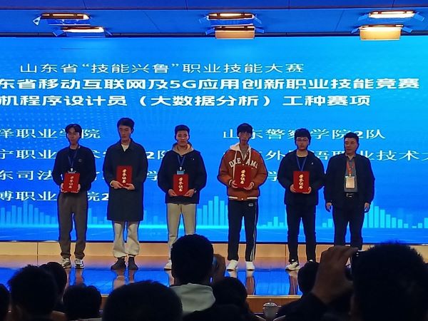 此前,1124日至25日,山东省技能兴鲁职业技能大赛——第五届山东省移动互联网及5G应用创新职业技能竞赛计算机程序设计员(大数据分析)赛项决赛在济宁职业技术学院举办。我院有6名学生和1名教师参加了比赛,以上巩程程团队获得山东省二等奖,并获得国赛资格,庄波老师获得职工组二等奖。