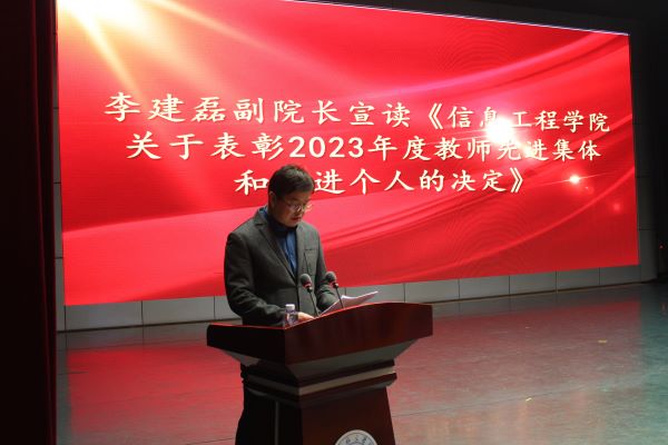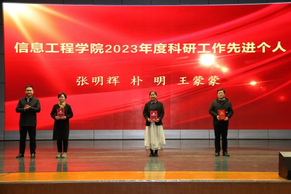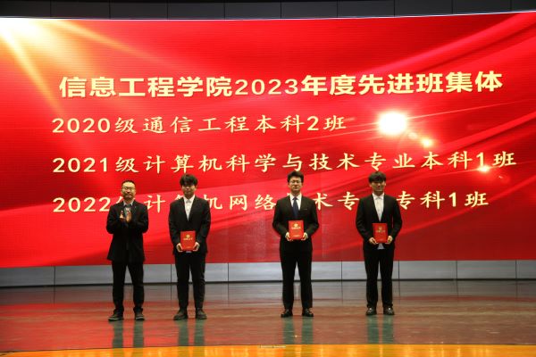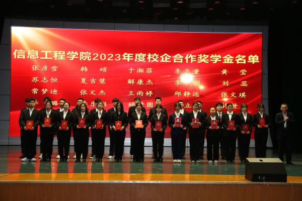 孙银河为获得学院工程教育认证突出贡献奖的教师颁发证书,为计算机科学与技术教研室颁发教师工作先进集体奖牌;教务处副处长齐丽霞、科研处副处长李永、学院院长王海燕分别为获得教学工作先进个人、科研工作先进个人、管理服务先进个人和学科竞赛优秀指导教师荣誉称号的教师颁发证书;学工处副处长王泰宁、学院党总支书记李华分别为获得学院先进班集体称号的班级代表和优良学风宿舍的宿舍代表颁发证书;合作发展处副处长李军为获得校企合作奖学金的同学颁发证书;党总支副书记刘占贵、副院长李建磊、副院长孟伟分别为获得学院2023年度学习标兵、学生干部标兵、科创标兵的学生颁发证书。