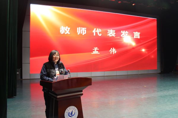 教师代表孟伟、张明辉,学生代表宋祥骏、史宁宁做了交流发言。