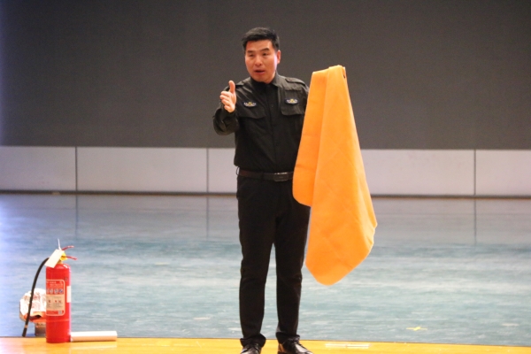 本次培训会以“预防为主,生命至上”为主题,董建波教官以辽宁盘锦“1·15”重大爆炸着火事故为案例,详细解读了火灾的危险性及防火措施,提醒同学们在宿舍中一定注意用电安全,不在宿舍吸烟、给电瓶充电、避免使用大功率电器,在火灾发生时一定保持冷静。他还向同学们详细解读和示范了灭火器、防火毯的使用方法。通过此次培训,加强了同学们对消防安全的认识和责任,掌握了安全隐患的识别技巧。