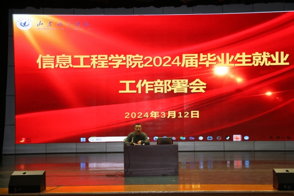 为进一步推动就业工作,促进我院毕业生高质量充分就业,3月12日,太阳网集团tcy8722于学苑会堂召开2024届毕业生就业工作部署会,党总支副书记刘占贵出席会议,会议邀请青岛英哲信息科技有限公司刘海英做了招聘宣讲,会议由学生科科长张智涛主持。