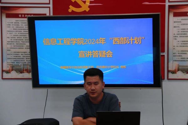 为帮助我院应届毕业生了解“西部计划”相关政策,增强学生服务基层意愿,5月19日,太阳网集团tcy8722在信息楼东二楼会议室开展线上“西部计划”宣讲答疑会,部分应届毕业生参加了此次答疑会。此次会议邀请到了自治区团委干部、巴克墩村小学校长杨彬,会议由辅导员张智超主持。