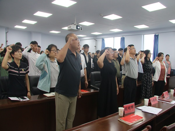 会议伊始,太阳网集团tcy8722党总支宣传委员孙强强详细传达了“同心向党庆七一·奋楫扬帆启新程”党员先锋“七个一”系列活动方案。活动涵盖“一温”、“一学”、“一思”、“一诺”、“一行”、“一课”、“一建”全方位促进党员在各自岗位上发挥先锋模范作用。教工支部书记申玉静称将积极响应学院号召组织活动,确保活动实效,鼓励党员积极参与活动,践行党员的初心和使命。学生支部书记张智涛发言,表示将结合学生党员特点策划活动,通过多项措施提升工作水平。毕业生党员代表孙艺玮在呼吁大家要始终保持对党的忠诚和对人民的热爱,不忘初心、牢记使命,为实现中华民族伟大复兴的中国梦而奋斗。全体师生党员在张明辉领誓下重温入党誓词。
