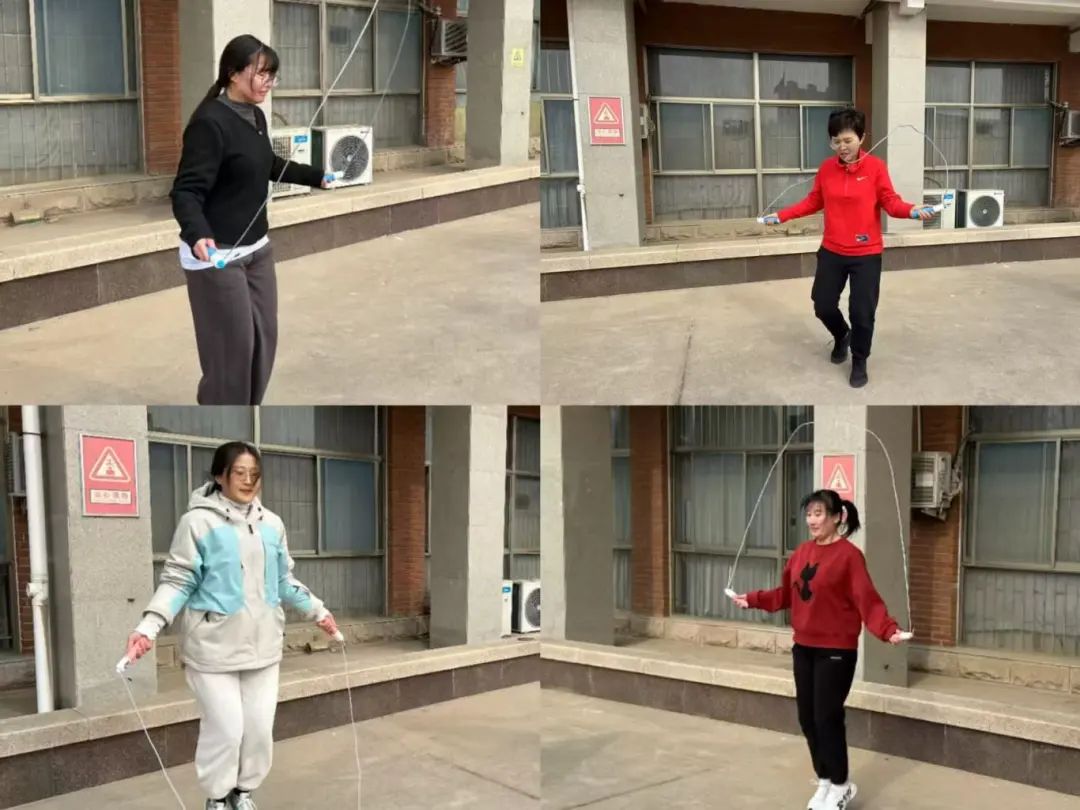 春日暖阳下,比赛现场热闹非凡。随着裁判哨声响起,教职工们迅速进入状态。有的老师身轻如燕,跳绳在空气中呼呼生风;有的老师则节奏稳健,展现出十足的耐力。现场师生热情高涨,加油声、欢呼声交织成一曲充满活力的乐章。比赛结束后,无论成绩如何,大家脸上都洋溢着满足的笑容。