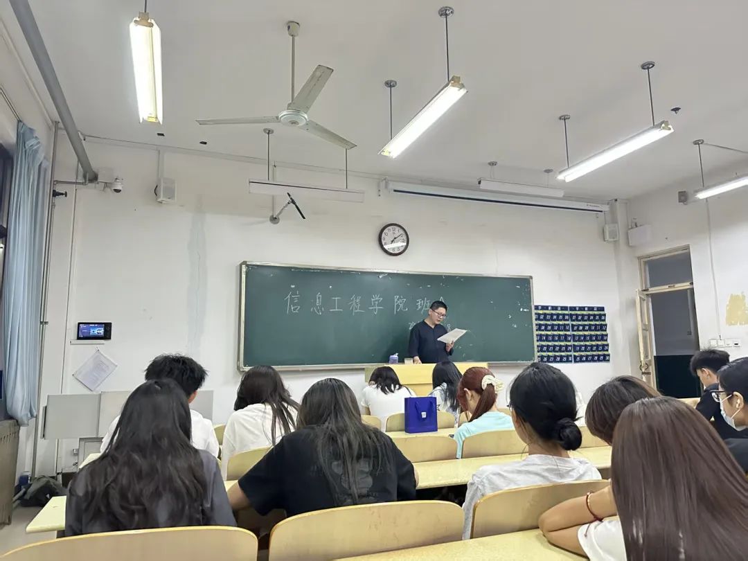 在诚信教育环节,班主任传达大学期间诚信教育管理要求,结合以往考试违规案例,就替考、作弊等行为的界定与处罚进行深入阐释,告知同学们考试违规将面临的纪律处分及对个人未来发展造成的不良影响,督促学生严守诚信底线,杜绝考试违纪行为。