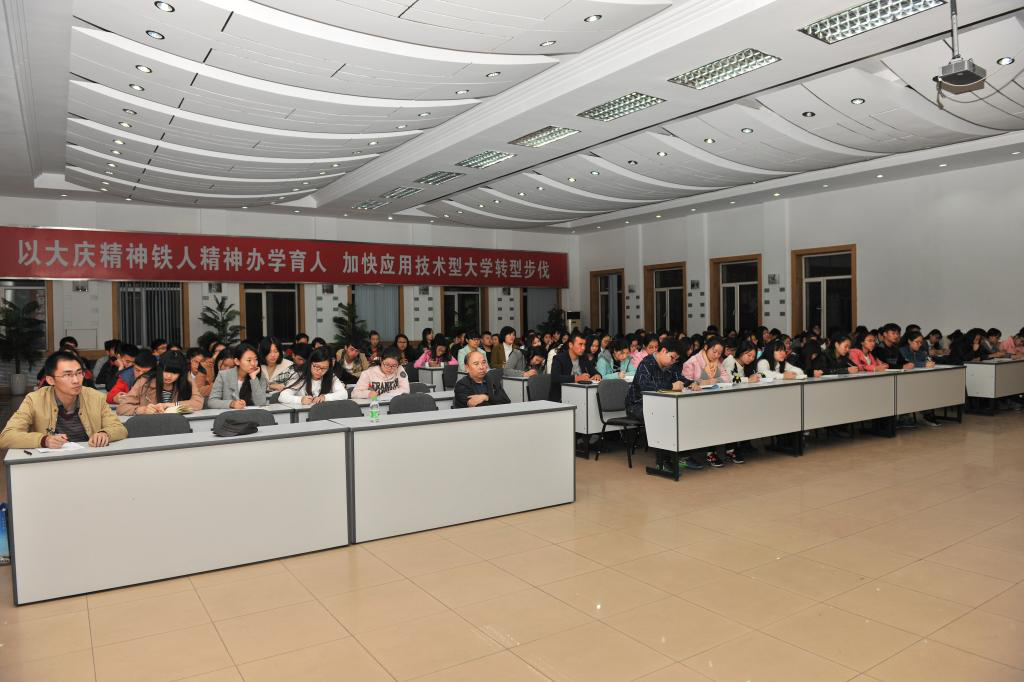 讲座中,刘恒副书记结合自己对大庆精神铁人精神的研究和身边的事例,从应该牢记的大庆精神、铁人精神;传承大庆精神、铁人精神是我们的义务与责任;培养自己优良的人格品质,做铁人式的社会主义建设者和接班人三个方面与同学们交流了传承大庆精神、铁人精神的一些体会。刘书记强调,牢记大庆精神、铁人精神不是目的,关键在于怎么去做,怎么能把牢记的大庆精神、铁人精神融入到我们的灵魂、思想中,转化为我们的行为、习惯和行动,成为我们优良人格品质中重要的组成部分,这才是学习的真正目的。最后,刘书记希望全校学生党员,努力做一名讲诚信、负责任、有本领、敢担当的青年人,弘扬大庆精神,使自己成为铁人式的社会主义合格建设者和可靠接班人。