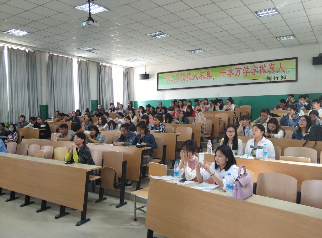 5月18日,教师教育学院小学教育专业2012级学生实习总结汇报会在第六教学楼阶梯教室举行。汇报会由杨松柠老师主持,迟艳辉,闵海燕等实习带队教师以及下学期即将开始实习的2013级的同学们也全员参加了汇报会。