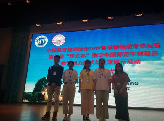 2019年9月26日至29日,由中国教育技术协会微格教学专业委员会主办的第九届“华文杯”全国师范生数学创课大赛在广西师范大学成功举行。该赛事是国内目前参与最多、影响最广的师范生教学技能比赛之一,也是各师范院校和师范生教师职业素养展示、交流和学习的平台,对激发师范生积极投身数学教育教学工作的兴趣,促进师范生专业成长具有重要的引领作用,已成功举办九届。本次创课大赛吸引了来自全国70所师范院校共310余名优秀的数学与应用数学专业和小学教育专业的学生参加。经过评审专家的严格评审,教师教育学院选送的数学与应用数学专业和小学教育专业的6名参赛选手,凭借优质的教学设计、清晰的教学思路和出色的现场表现,在创课设计、教学设计、微课展示和微格展示比赛中,获得一等奖1项,二等奖3项,三等奖7项,优秀奖1项。