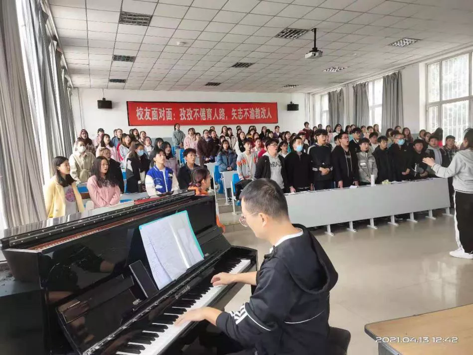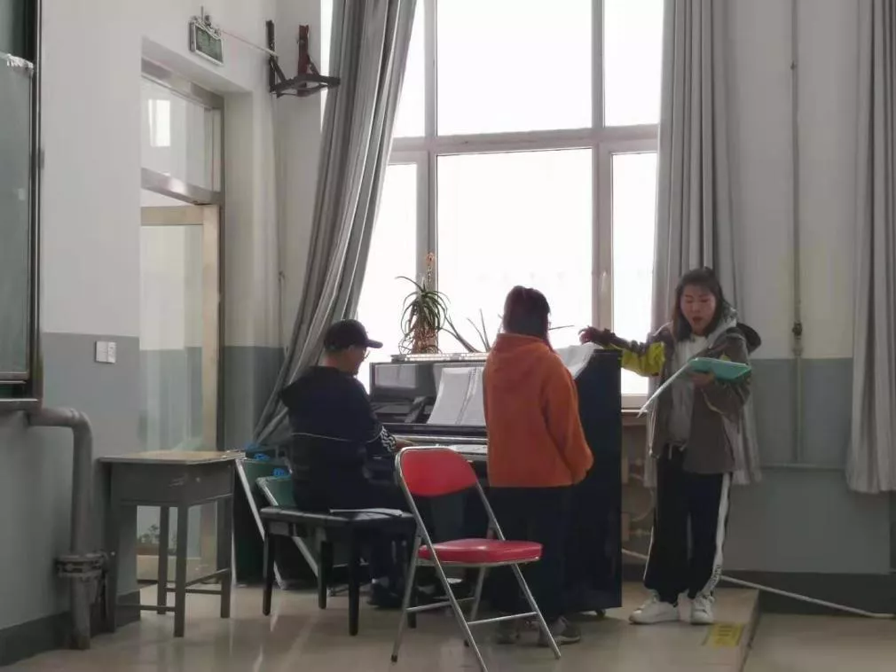 本次参与“高举团旗跟党走”比赛,由指导教师和团内干部共同进行排练,指导教师王琳琳主要负责指挥、正确发声、合唱排练,陈晨教师负责乐曲的改编、处理和伴奏。合唱团内干部主要负责带领团员们进行乐曲的演唱、各声部间的合作。