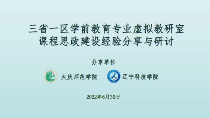 6月30日晚19:00,教育部“三省一区学前教育虚拟教研室”召开了学前教育专业课程思政专题线上分享活动,会议组织方从17所高校联盟中遴选了我校和辽宁科技学院进行分享交流。会议由沈阳师范大学学前与初等教育学院王小溪博士主持,我校学前教育专业全体教师参加了此次活动。