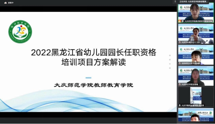 为了科学制定黑龙江省幼儿园园长任职资格培训方案,修订完善学前教育专业人才培养方案,借助专家智慧,共同谋划园长培训和专业人才培养工作,教师教育学院于2022年7月20日上午9:00召开了黑龙江省幼儿园园长任职资格培训方案论证会暨学前教育专业人才培养方案修订线上研讨会。本次会议邀请了12位来自黑龙江省教育厅基教处、黑龙江省教师发展学院、吉林省教育学院、齐齐哈尔市教育局、大庆市教育局、齐齐哈尔市教育教学研究院、大庆市教师发展学院、佳木斯大学、沈阳师范大学、大庆幼教中心、大庆油田铁人学院、齐齐哈尔市第一幼儿园的学前教育领域专家。本次会议由张冬梅副教授主持,学院行政负责人张晓梅博士致开幕词,学前教育系老师参加了本次会议。